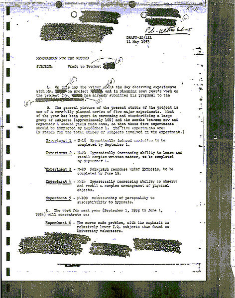 “The breakthrough came with the achievement of the capability of ordinary a subject___under the influence of drugs and posthypnotic suggestions___to perform an action and recall it later,” says Nolan. “For example, a subject could be controlled to the point where he would pull out a weapon and fire without remembering later what had happened.” (“Induce hypnosis rapidly on unwitting subjects: create durable amnesia: implant hypnotic suggestions that were ‘operationally useful,’” page 59.)